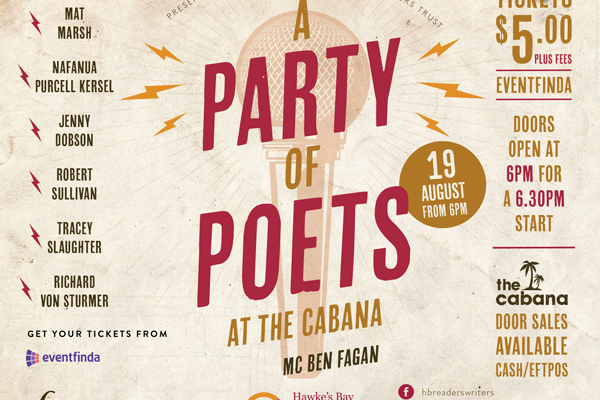 HAVE A POETRY PARTY WITH A PARTY OF POETS! TUESDAY 19 AUGUST 2025! As part of the National Poetry Day shenanigans Hawke’s Bay Readers and Writers Trust have planned an extravaganza of beautiful minds to entertain Napier like the bards of old. The audience can make themselves cosy at the Cabana, whilst a cabal of […]