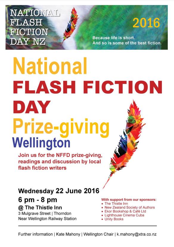 Please join us next week for our National Flash Fiction Day celebrations, occurring 6-8pm in Auckland, Christchurch and Wellington. Judges Elizabeth Smither and James Norcliffe will attend the events in Auckland and Christchurch, respectively, and former NFFD judge Mary McCallum will present prizes in Wellington.