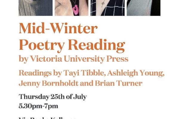 by Victoria University Press Readings by Tayi Tibble, Ashleigh Young, Jenny Bornholdt and Brian Turner All welcome. No RSVP needed.