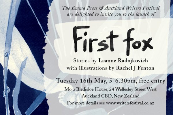 EVENT 141 THE EMMA PRESS – LEANNE RADOJKOVICH FREE EVENT The Emma Press warmly invites readers to the launch of First Fox, a short story collection by Auckland writer Leanne Radojkovich. All welcome. More TUE, 16 MAY 2017 5:00pm – 6:30pm Mojo Bledisloe House, 24 Wellesly Street West, Auckland CBD