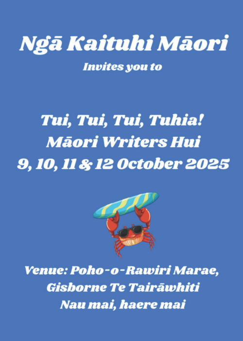 A programme will be available in April or May when registrations will also open. “Having regional hui in both islands is going to be one of the signature activities of Kaituhi Māori going forward,” says Ihimaera. “We think this is the best way for us to grow the pūtea of our writers of the future. Following Gisborne, we plan to have our hui in Nelson the following year, 2026.”