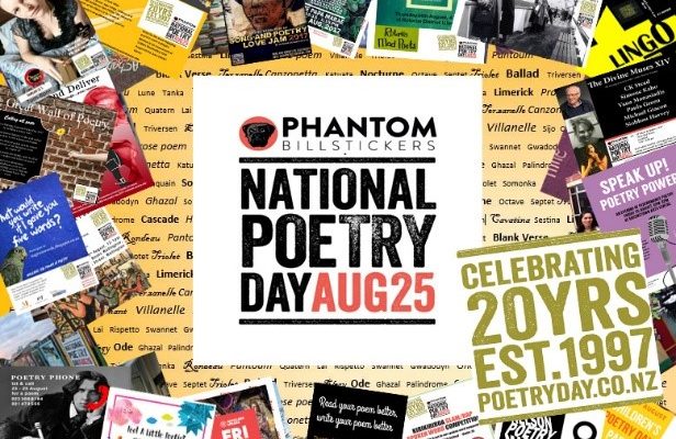To celebrate Phantom Billstickers National Poetry Day, many of the 20/20 poets will take part in more than 100 events nationwide. For full information, including places, venues, times, tickets and more, go to: http://www.nzbookawards.nz/national-poetry-day/calendar-of-events/.